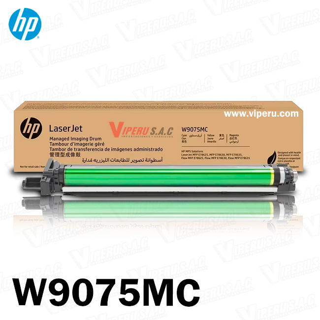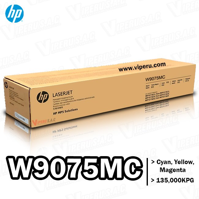 El DRUM HP W9075MC es un tambor de imagen (imaging drum) CYM (color) que se utiliza en la serie HP Color LaserJet Managed / Managed MFP E786.