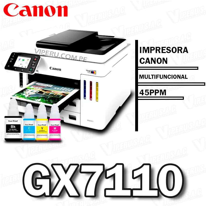 La Canon MAXIFY GX7110 es una impresora multifuncional de alto rendimiento diseñada para entornos empresariales y oficinas con alta demanda de impresión. Este equipo integra funciones de impresión, copiado, escaneo y fax, ofreciendo una solución completa en un solo dispositivo.