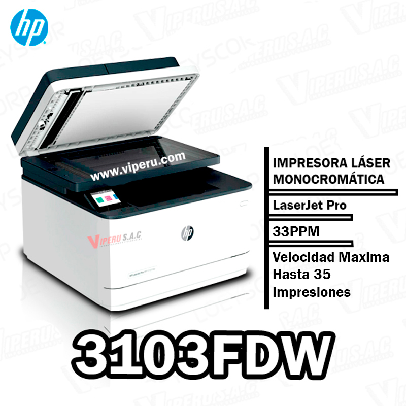 La HP LaserJet Pro MFP 3103fdw es una impresora láser monocromática multifunción diseñada para oficinas pequeñas o medianas, que combina impresión, escaneo, copia y fax en un solo equipo.