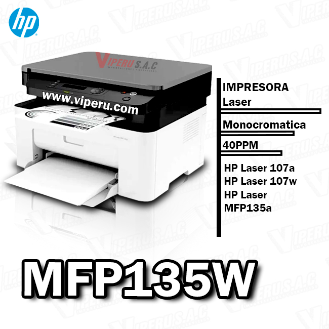 La HP Laser MFP 135w es una impresora multifunción láser monocromática diseñada para entornos domésticos o pequeñas oficinas que requieren imprimir, escanear y copiar en un solo equipo, con conectividad inalámbrica (WiFi) incluida. Según sus especificaciones oficiales, ofrece un buen equilibrio entre funcionalidad, tamaño compacto y conectividad para tareas cotidianas en blanco y negro