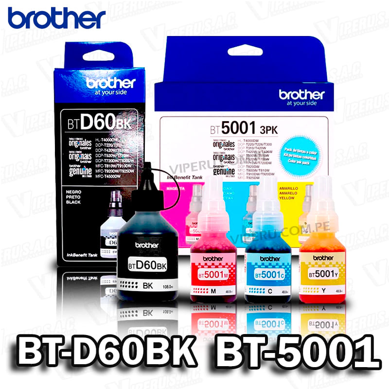 Juego de Tinta Brother Tripack BT-5001 Colores CMY y BTD-60BK Negro Original