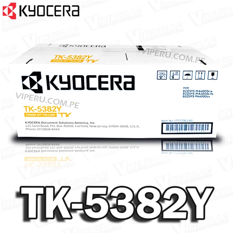 El tóner Kyocera TK-5382Y es un cartucho de color yellow (yellow) que utiliza tecnología de impresión láser, lo que permite obtener documentos con texto nítido, preciso y de secado inmediato. A diferencia de las impresoras de tinta líquida, este tóner funciona con polvo fino que se fija al papel mediante calor, garantizando resultados profesionales y resistentes.