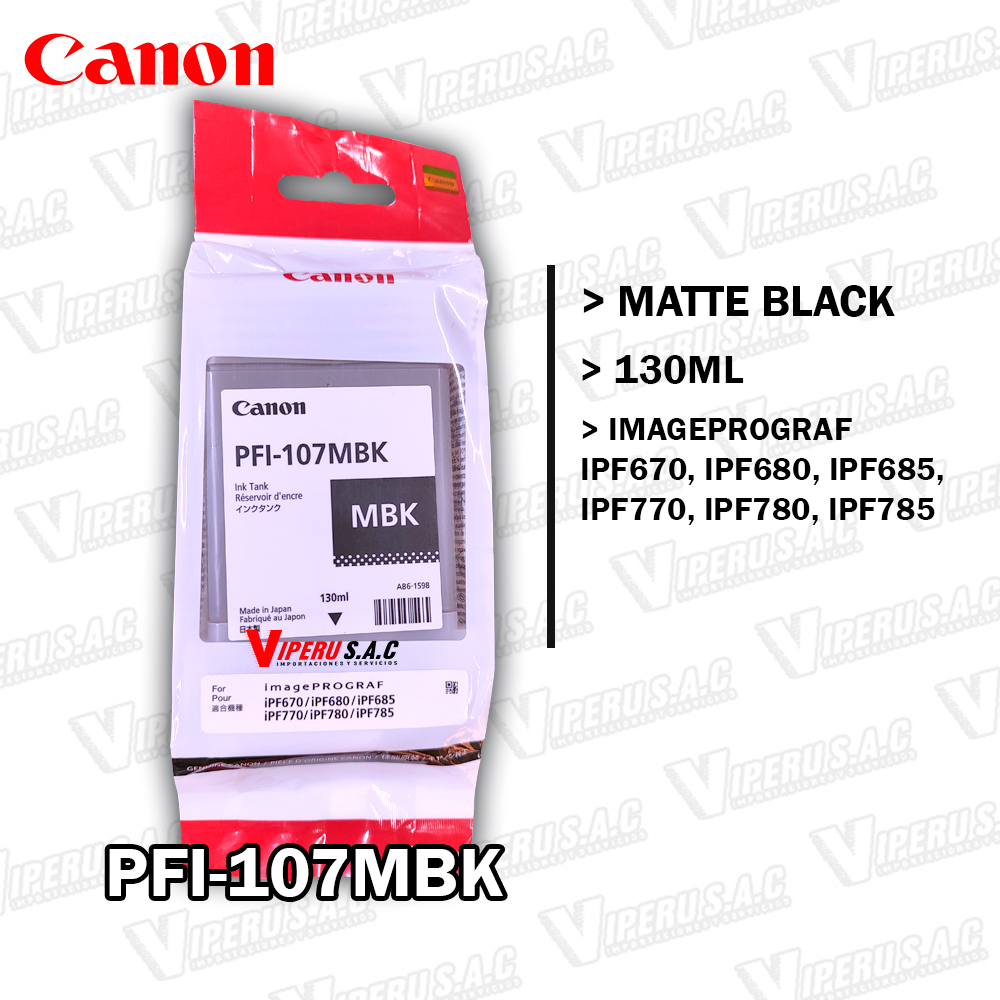El tanque de tinta Canon PFI-107MBK (Mate Black, 130 ml) es compatible con los siguientes plotters Canon imagePROGRAF: