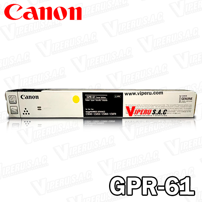El Tóner Canon GPR‑61 Yellow es un cartucho original de alta capacidad diseñado para ofrecer impresiones profesionales de alto volumen, ideal para entornos corporativos, centros de impresión y oficinas que demandan rendimiento, calidad y fiabilidad. Compatible con modelos de la serie imageRUNNER ADVANCE DX, este tóner garantiza textos nítidos, negros profundos y gráficos definidos desde la primera hasta la última página.