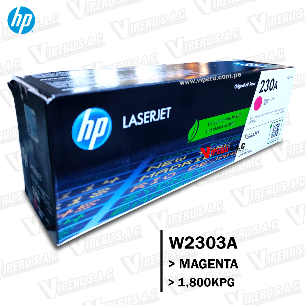 El tóner también conocido como HP 230A Magenta, es un cartucho original de color cian diseñado para impresoras de la serie HP Color LaserJet Pro 4203 / 4303.