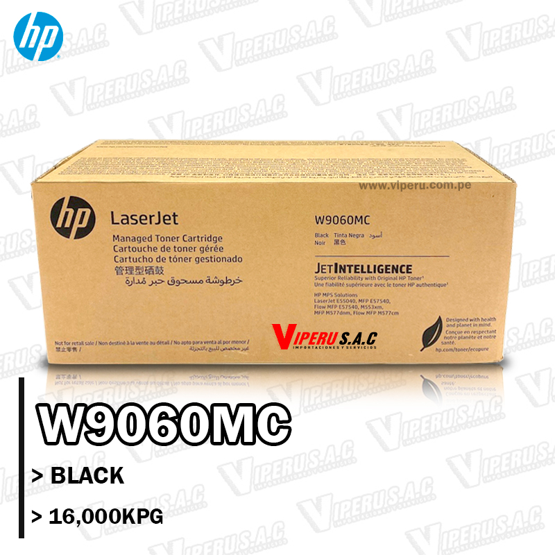 El tóner HP W9060MC es un cartucho original de alto rendimiento en color negro, diseñado para impresoras de las series HP Color LaserJet Managed E55040 y HP Color LaserJet Managed Flow MFP E57540.
