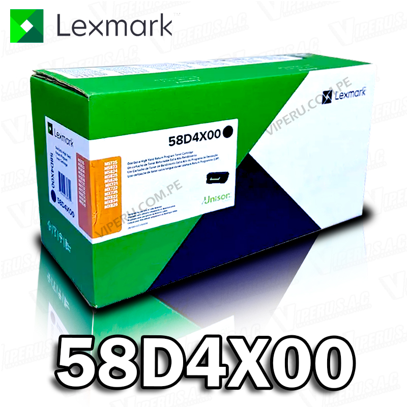 El Lexmark 58D4X00 es un cartucho de tóner negro de rendimiento extra alto (aprox. 35 000 páginas) diseñado para impresoras láser monocromáticas y multifunción de Lexmark.