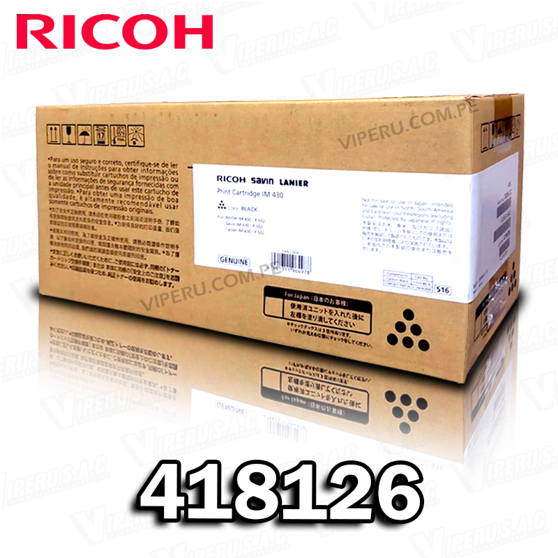 El tóner Ricoh 418126 es un cartucho de tóner negro diseñado para impresoras láser específicas de la marca Ricoh. Estos consumibles están hechos para encajar y funcionar correctamente solo en modelos compatibles, garantizando buen rendimiento y calidad de impresión.