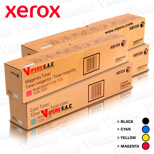 specíficamente para las impresoras multifunción de la serie Xerox WorkCentre 7120, 7125, 7220 y 7225. Este cartucho de tóner en color magenta ofrece una calidad de impresión profesional con colores vivos, consistentes y duraderos, ideales para entornos corporativos que requieren resultados de alto impacto visual en cada impresión.