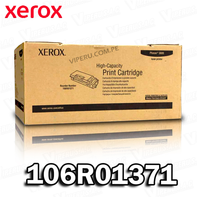 El Tóner Xerox 106R01371 es un cartucho de tóner original diseñado para impresoras láser Xerox. Su función principal es contener y suministrar el polvo de tóner que la impresora utiliza para formar texto e imágenes sobre el papel durante el proceso de impresión láser.