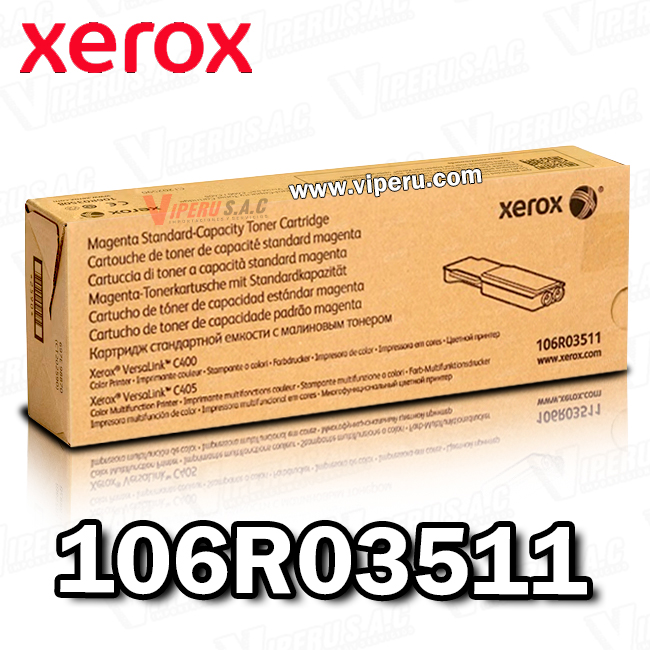 El tóner Xerox 106R03511 es un consumible original diseñado específicamente para las impresoras Xerox VersaLink C400 y Xerox VersaLink C405. Se trata de un cartucho de tóner magenta de capacidad estándar, que ofrece un rendimiento aproximado de 2,500 páginas bajo condiciones de impresión normales (con una cobertura promedio del 5 %).