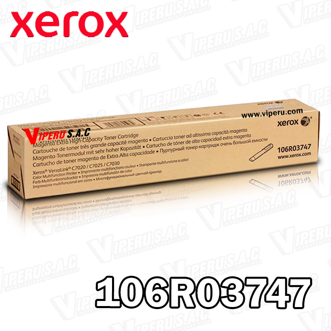 El tóner Xerox 106R03747 es un cartucho (magenta) de alta capacidad que se usa en impresoras multifunción de la serie Xerox VersaLink C7000 / C70xx, especialmente:
